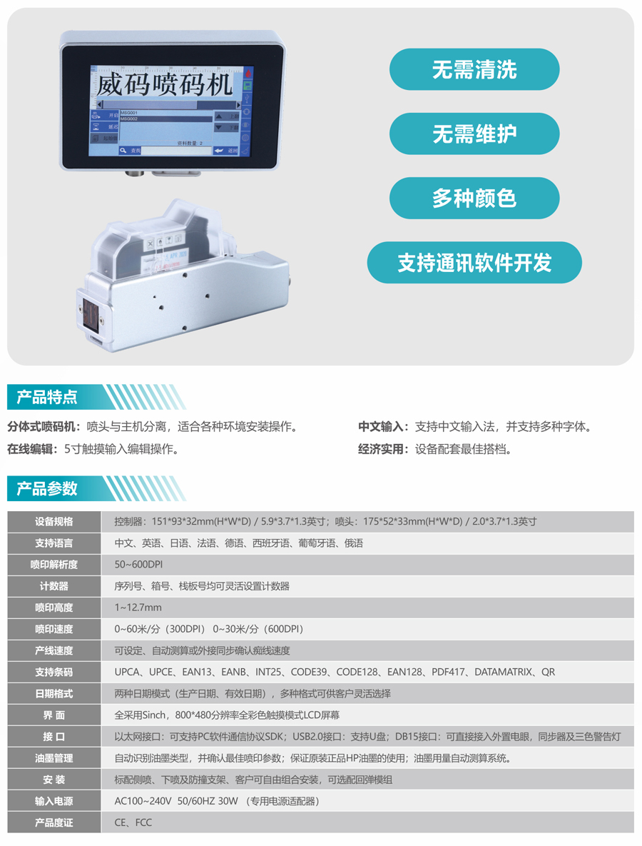 ● 可噴印:二維碼、條形碼、中文、數字、英文